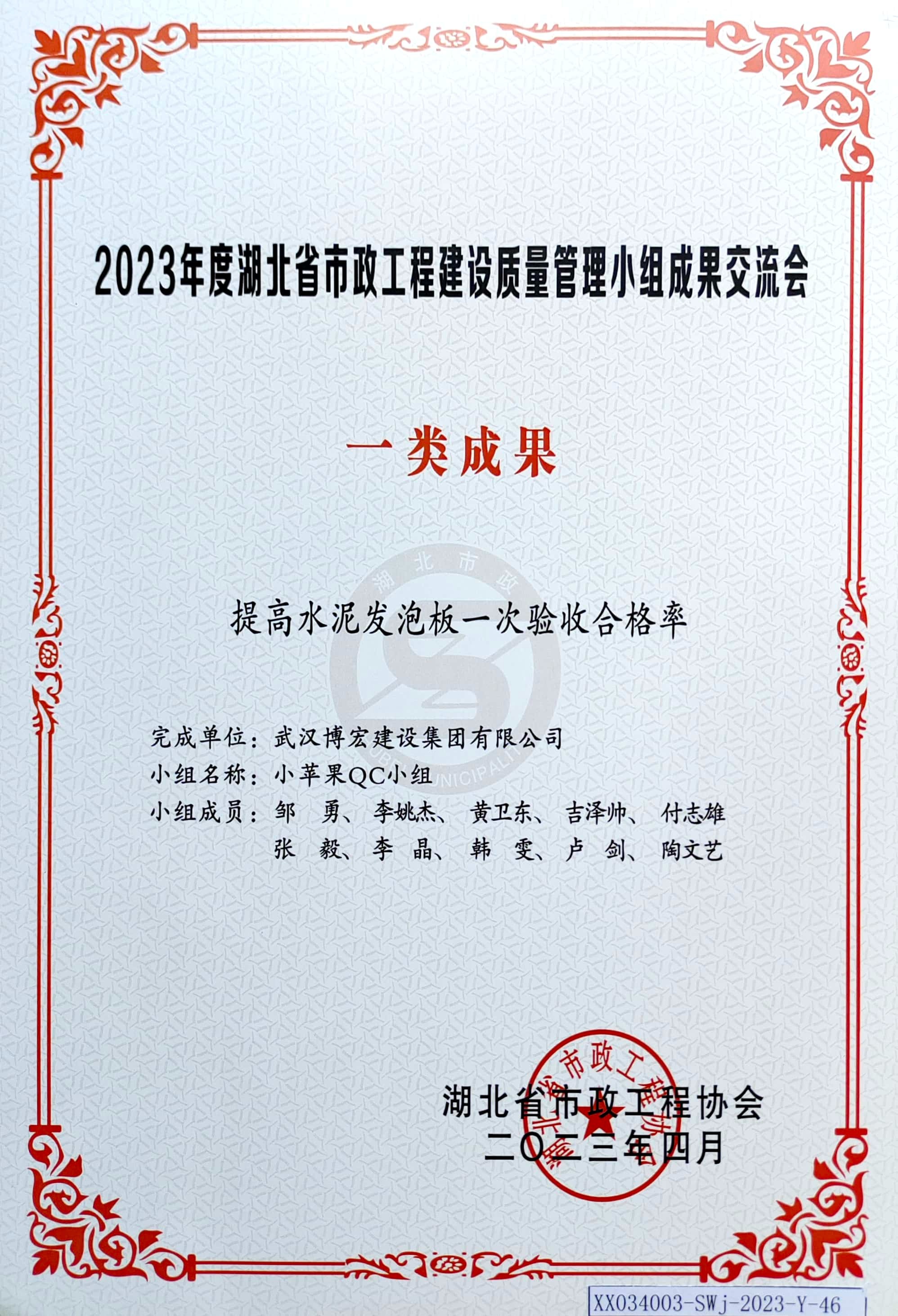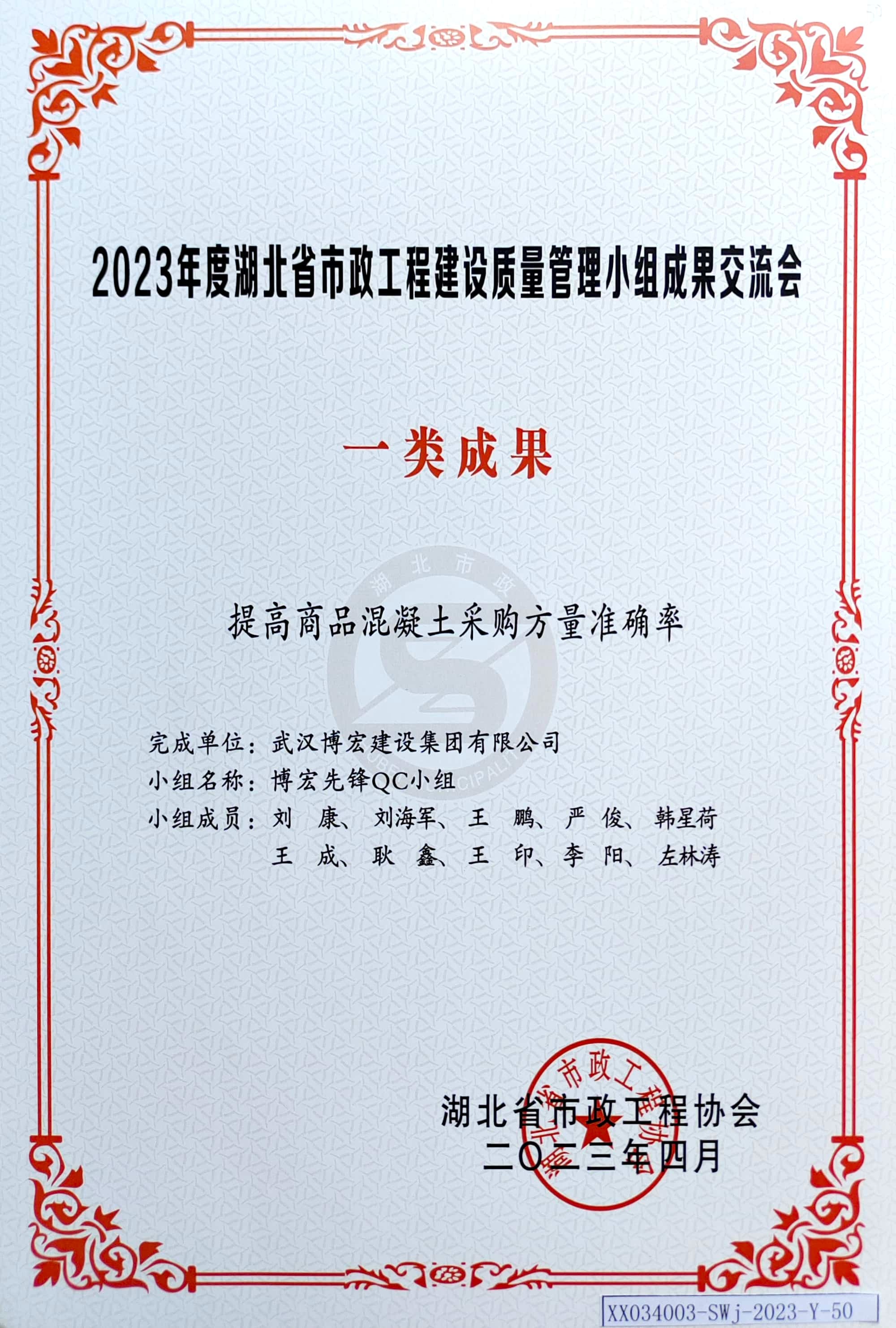2023年度湖北省市政工程建設(shè)質(zhì)量管理小組成果交流會-一類成果