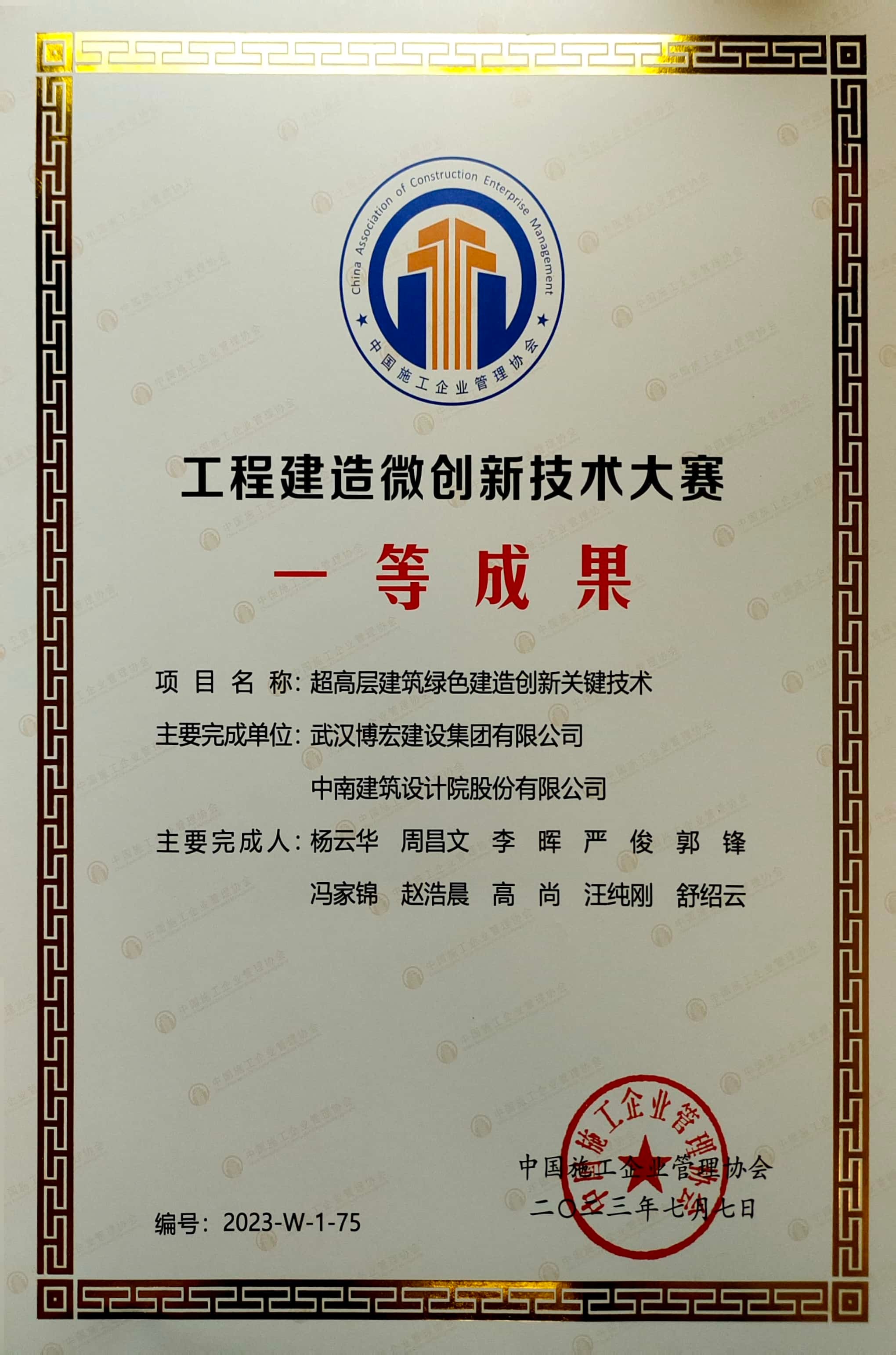 2023年中國施工管理企業(yè)協(xié)會-超高層建筑綠色建造創(chuàng)新關(guān)鍵技術(shù)-工程建造微創(chuàng)新技術(shù)大賽一等成果