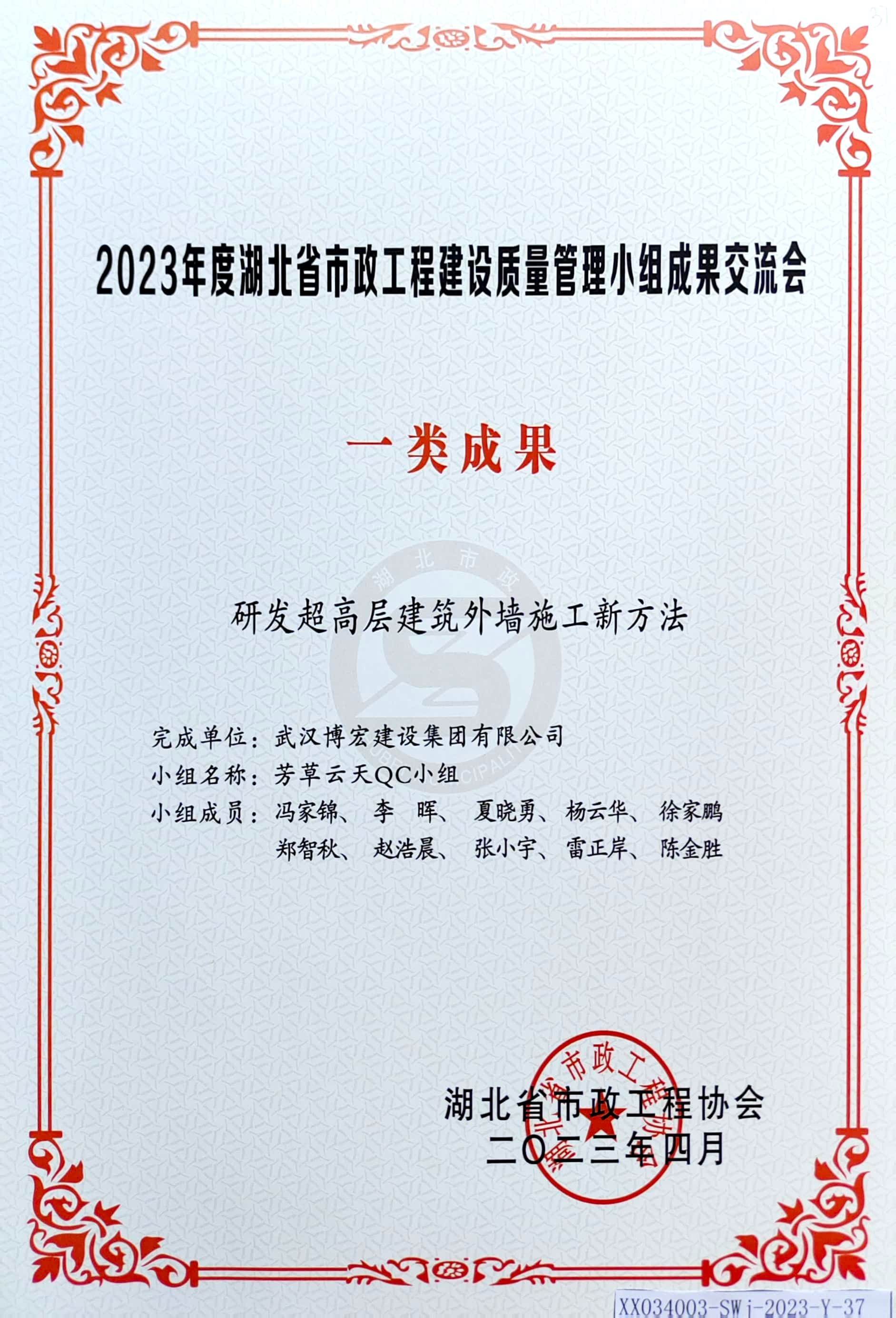 2023年度湖北省市政工程建設(shè)質(zhì)量管理小組成果交流會 一類成果