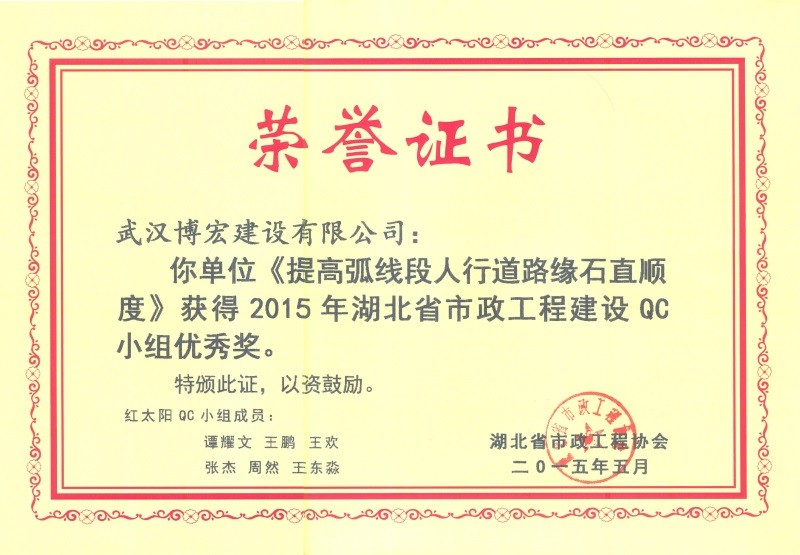2015年省市政優(yōu)秀獎