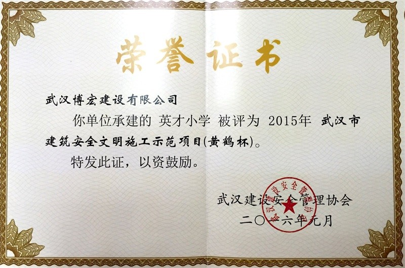 英才小學(xué)-綜合教學(xué)樓及食堂結(jié)構(gòu)優(yōu)質(zhì)工程證書(shū)