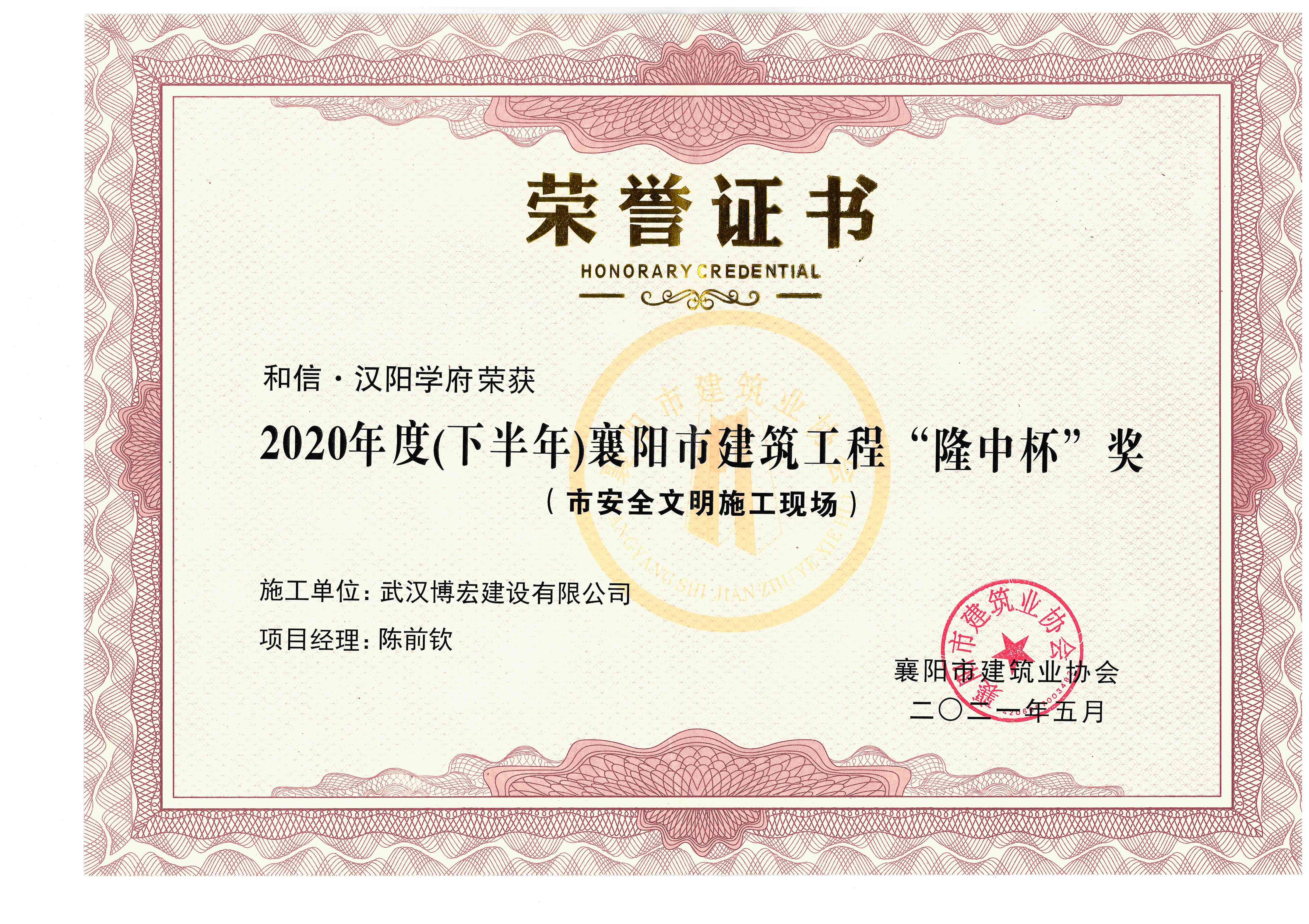 和信·漢陽學(xué)府2020年度(下半年)襄陽市建筑工程“隆中杯”獎(市安全文明施工現(xiàn)場