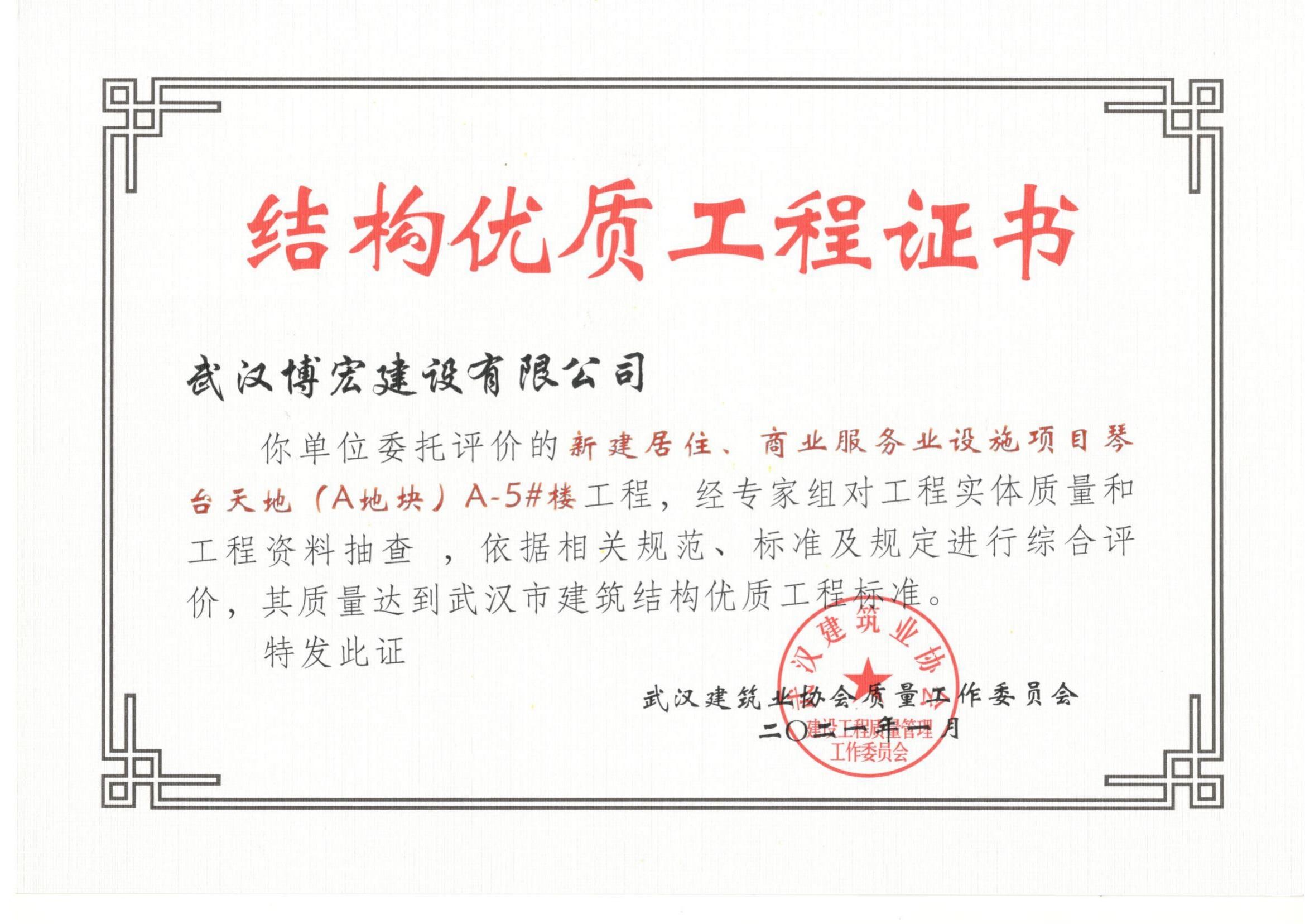 2021年武漢市結構優(yōu)質工程(琴臺天地(A地塊)5棟