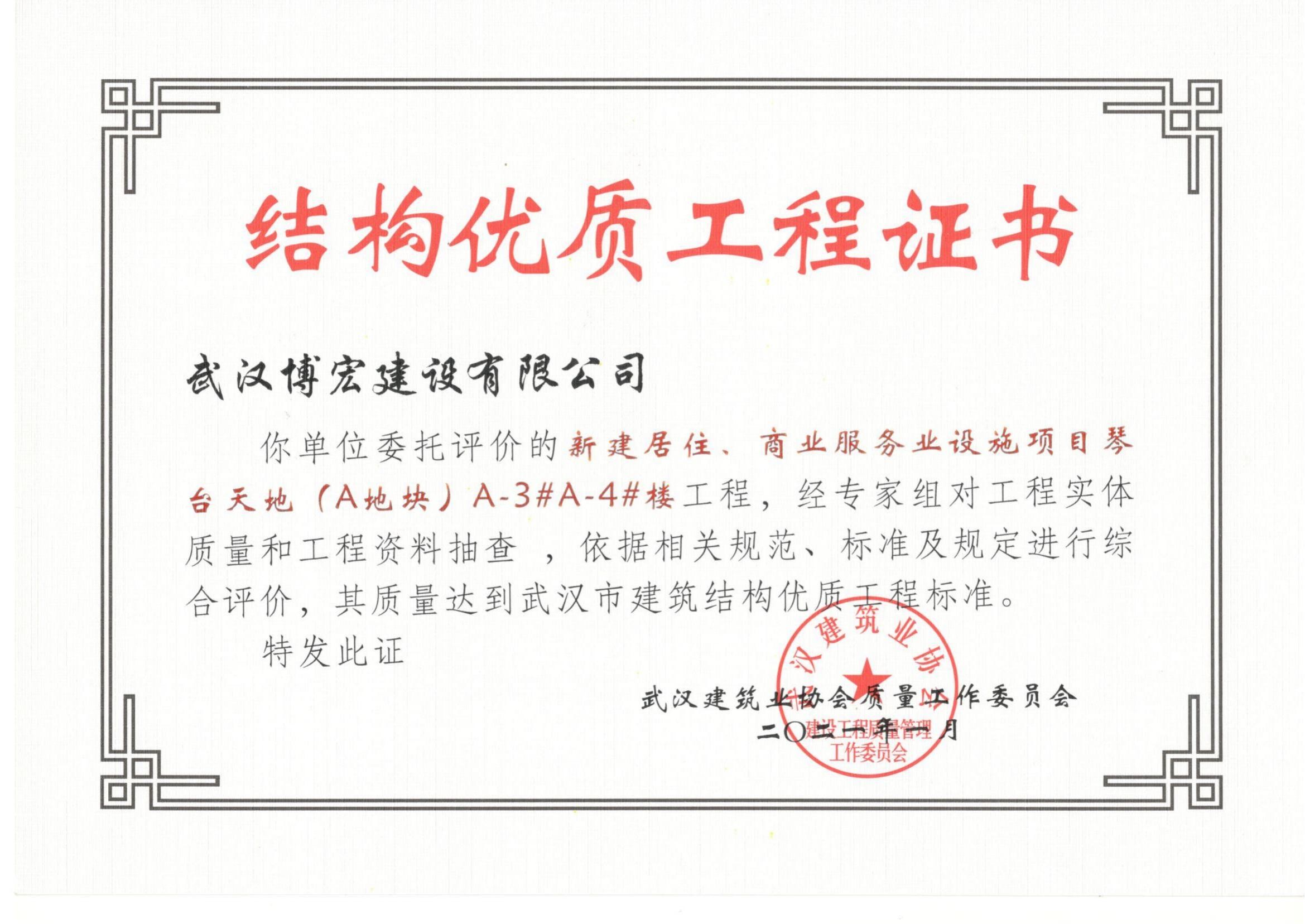 2021年武漢市結構優(yōu)質工程(琴臺天地(A地塊)3、4棟