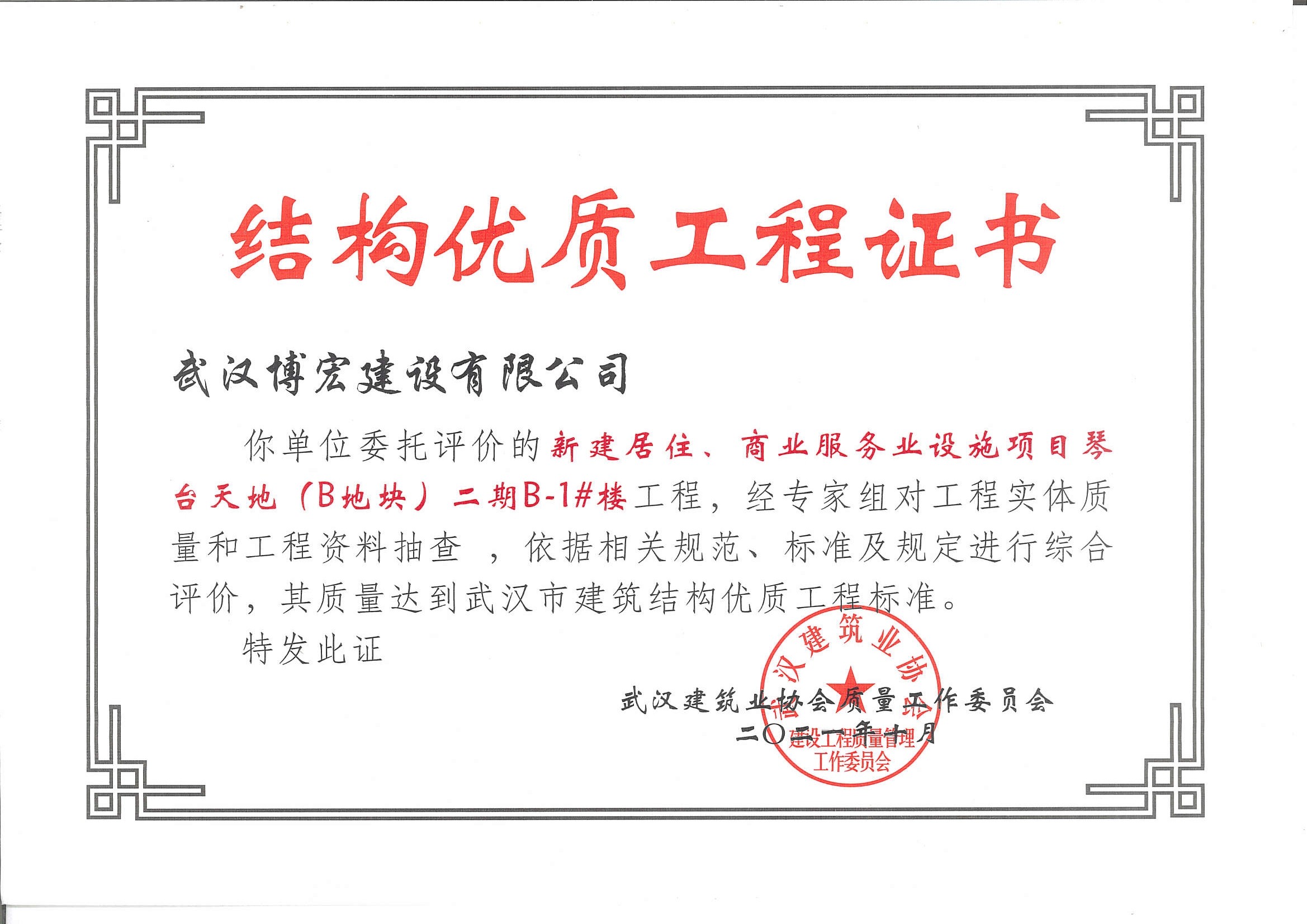 琴臺天地(B地塊)二期B-1#樓武漢市建筑結構優(yōu)質工程