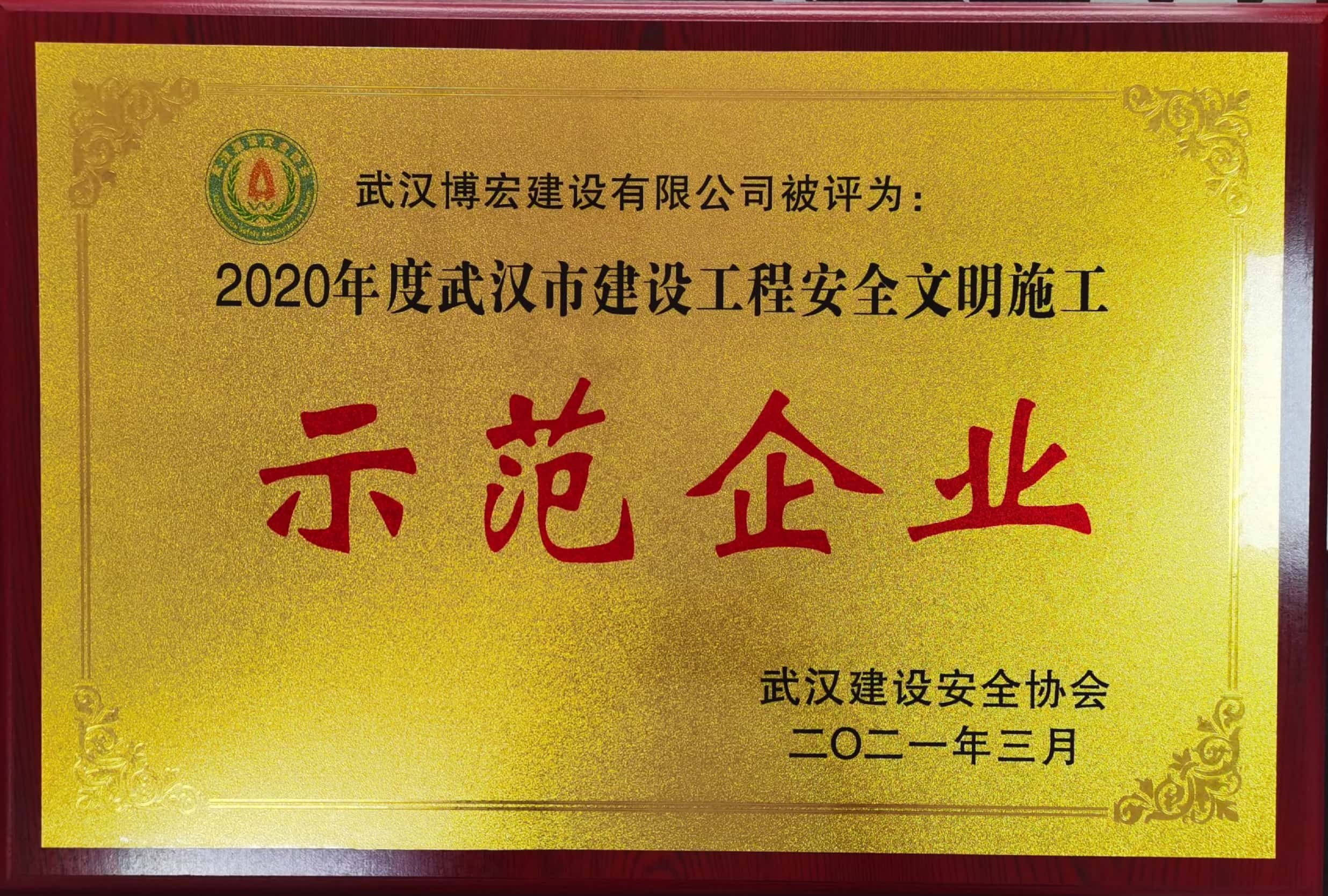 2020年度武漢市建設(shè)工程安全文明示范企業(yè)