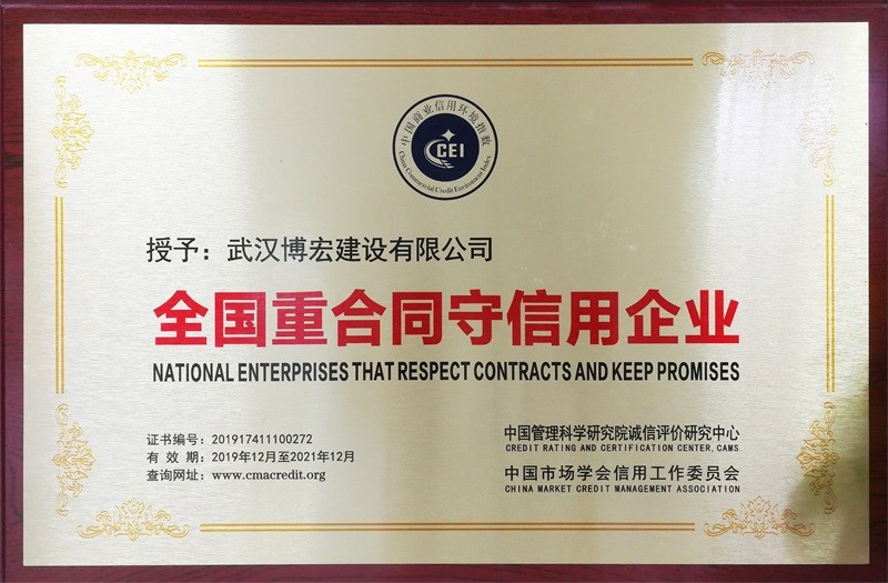 2018-2019年度武漢市守合同重信用企業(yè)