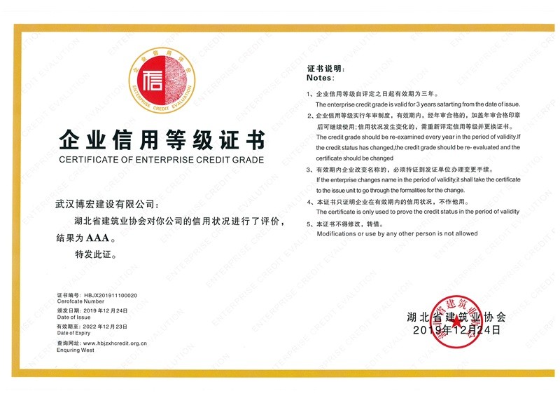 武漢建筑業(yè)信用企業(yè)等級(jí)證書(shū)