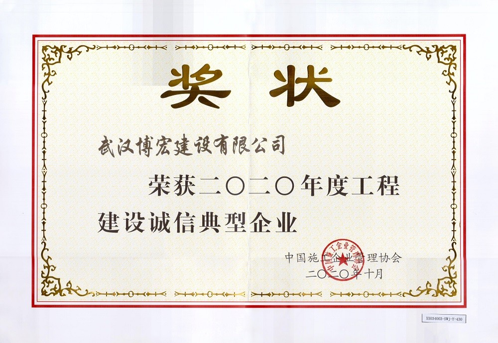 2020年度工程建設(shè)誠(chéng)信典型企業(yè)