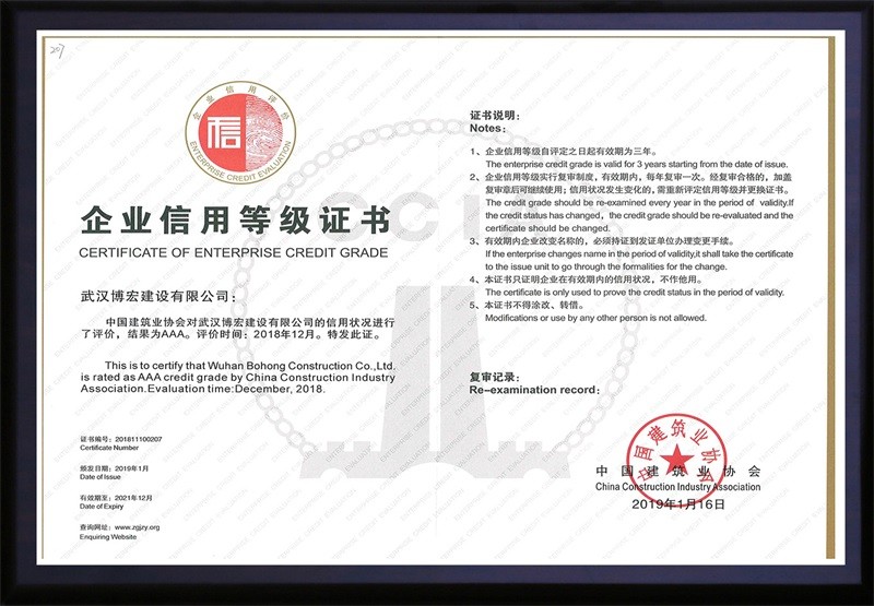 中國建筑協(xié)會3A信用等級證書(2019年1月)