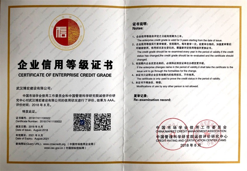 中國市場學(xué)會企業(yè)信用等級證書
