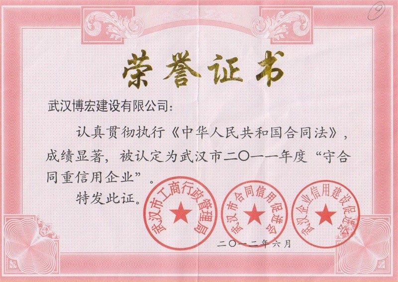 2011年度武漢市守合同重信用企業(yè)