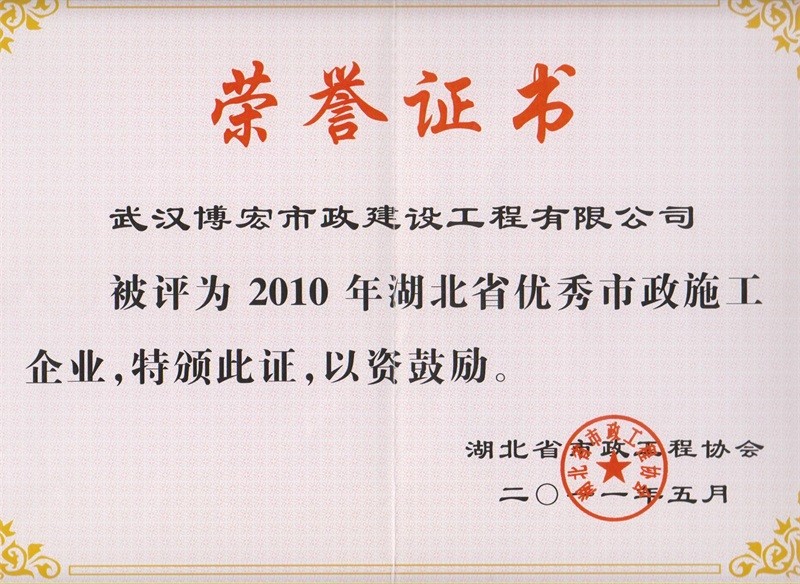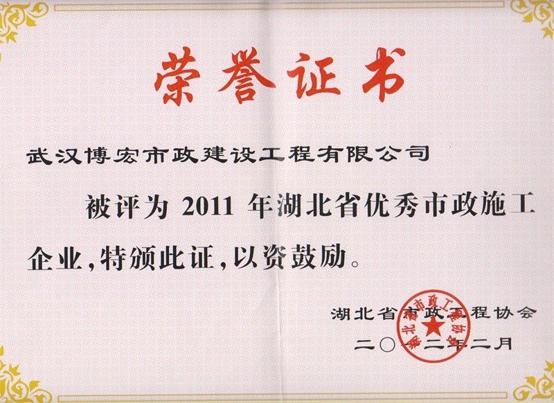 2011年度湖北省優(yōu)秀市政施工企業(yè)