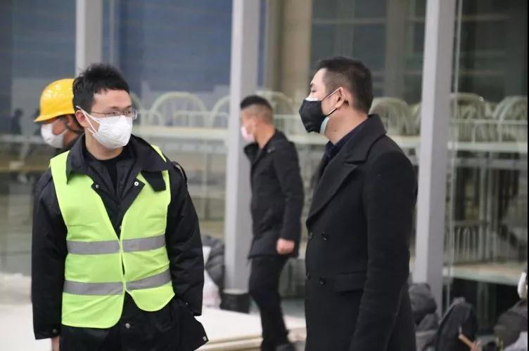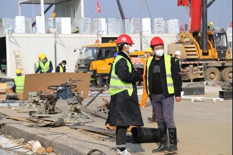 張光(右)在“火神山”項目現(xiàn)場協(xié)調(diào)施工