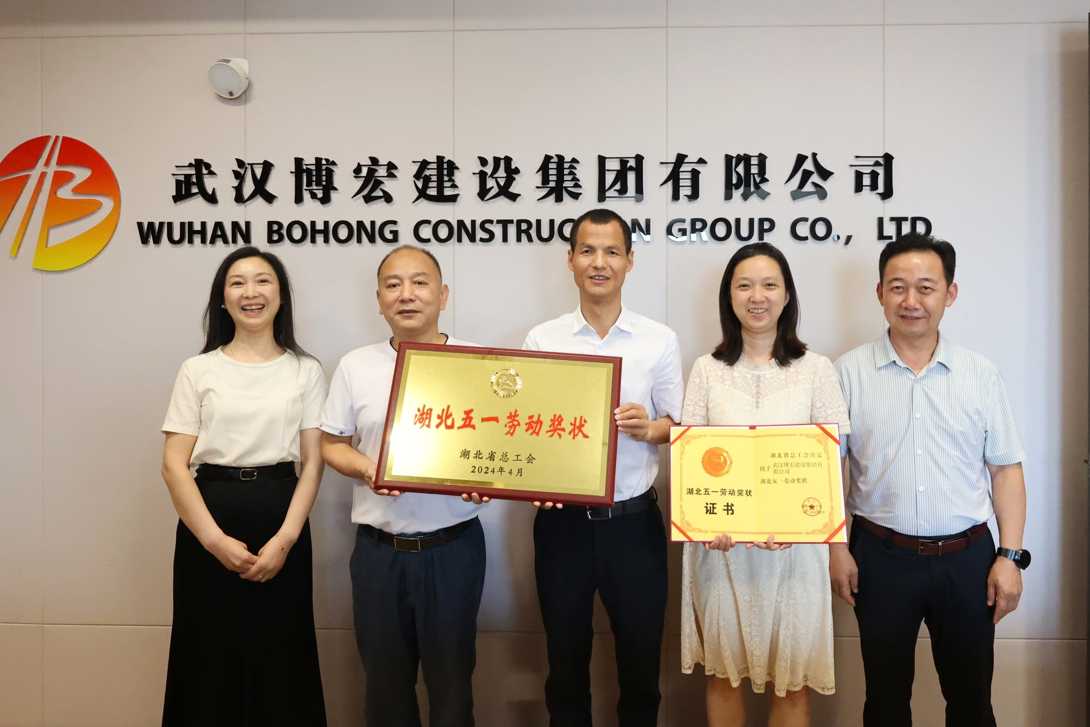 5月28日,武漢博宏建設(shè)集團(tuán)有限公司榮獲“湖北五一勞動獎狀”授牌儀式在公司30樓會議室舉行。漢陽區(qū)總工會常務(wù)副主席李鐘為博宏建設(shè)集團(tuán)頒發(fā)“ 湖北五一勞動獎狀 ”獎牌和證書。